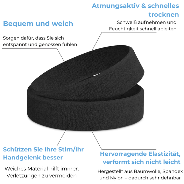 Drei feuchtigkeitsableitende Stirnbänder halten Schweiß weg von Augen. Beim Laufen oder Basketball bleibt die Sicht klar und die Konzentration länger erhalten.