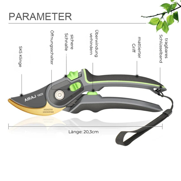 AIRAJ Gartenschere Scharf und Robust für präzises Schneiden im Garten